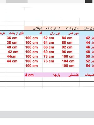 دو سایز ۳۸ تا ۴۴ و ۴۴ تا ۴۸